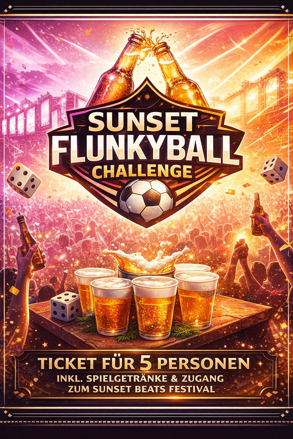 Mannschaftsticket für 5 Personen zur Teilnahme an der Sunset FlunkyBall Challenge inklusive aller Spielgetränke und Zutritt zum Sunset Beats Festival 2026!